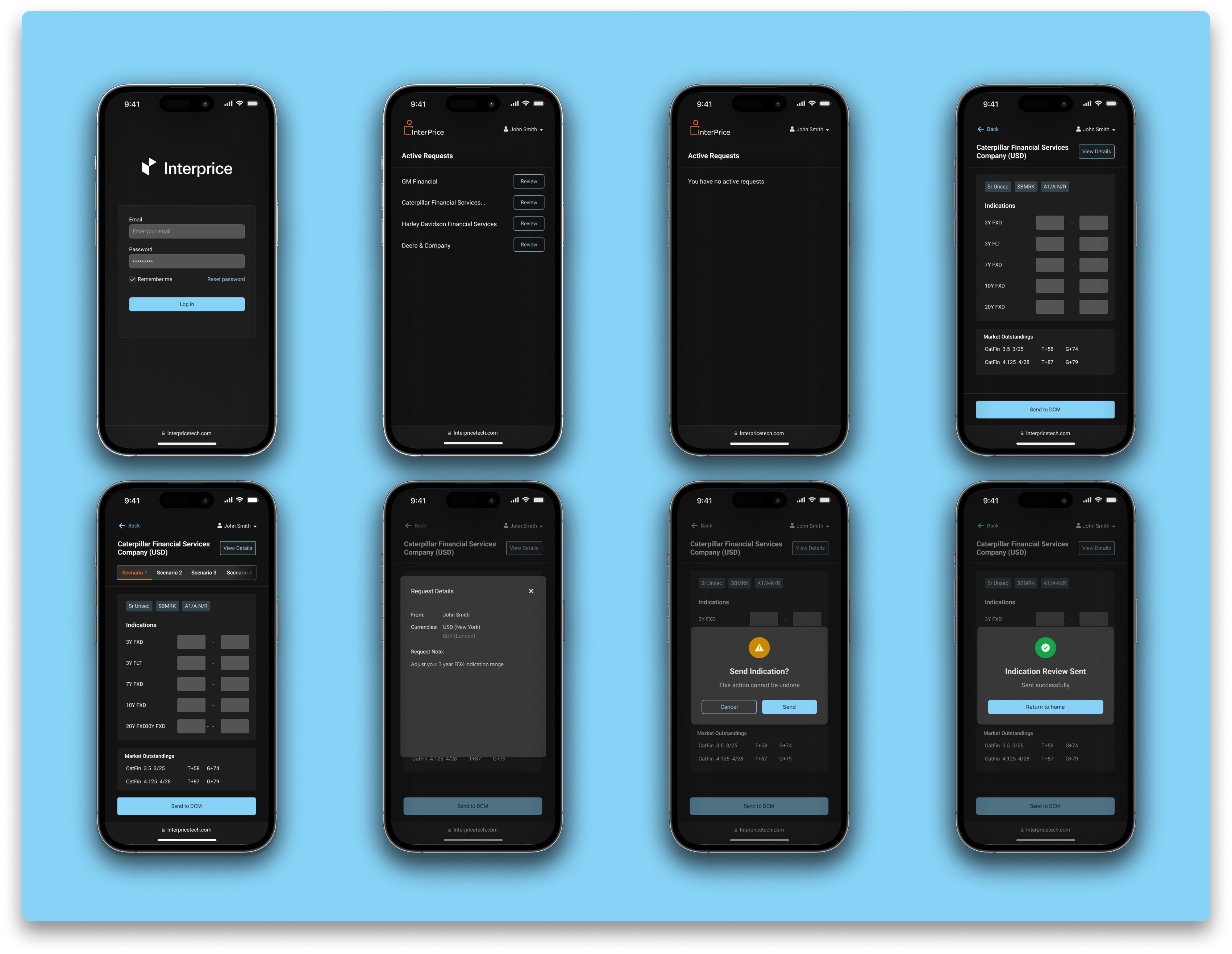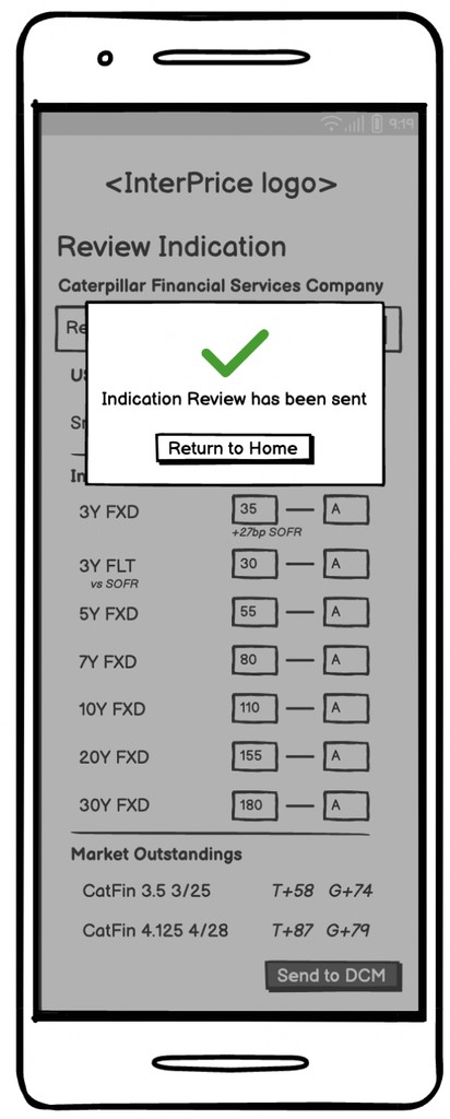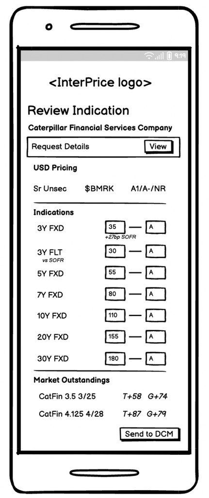 The Interprice platform has not been optimized for mobile use and is accessible only through a web app. Feedback from clients on a feature for communicating pricing with the debt capital markets (DCM) team emphasized the need for fast, mobile access. Users currently favor email responses over using our platform. This project successfully simplified the process, enabling users to efficiently review bank requests and submit pricing from their mobile devices, removing the dependency on computer access and the need to rely on email communication.